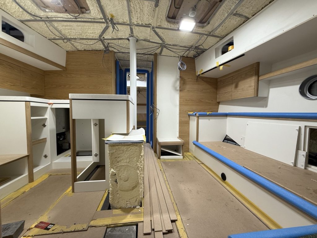 This is the phase of the build where the apparent chaos on board increases. More and more components come together, all at the same time. Interior elements, systems and finishing details are installed in parallel. While the yacht is clearly taking shape, the risk of damage also grows.