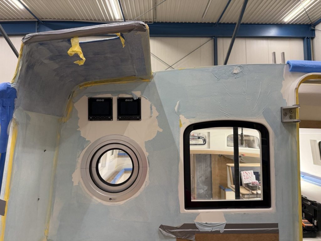 To protect her during this stage, the Puffin 42 is now almost completely wrapped. The exterior paintwork is covered with a special protective layer to prevent any damage. Inside, floors, furniture and surfaces are carefully shielded. Everything is focused on delivering the yacht without a single scratch.