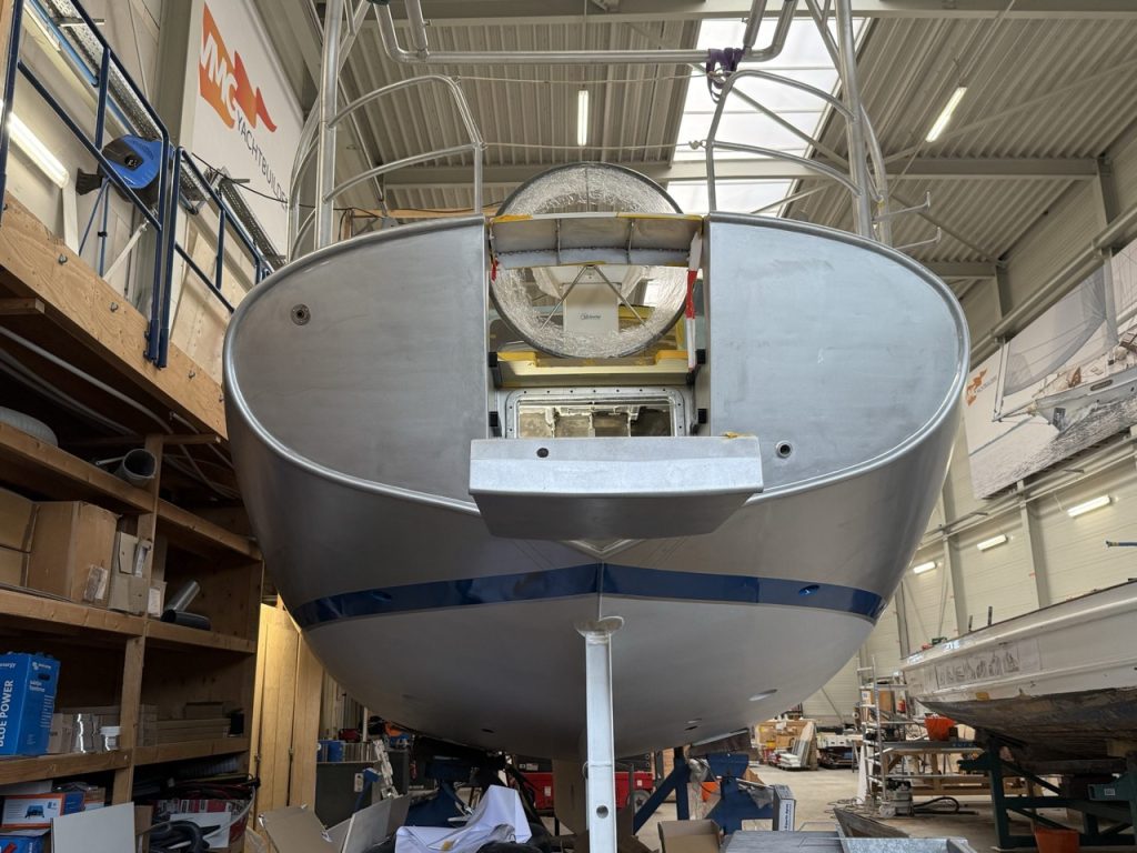 The interior is coming together beautifully. This Puffin 42 features a modern light oak interior, combined with the robust aluminium finish of the hull. The contrast with the elegant, white sprayed superstructure works exactly as intended. Strong, functional elements such as the bimini, solar arch and tender setup add to her purposeful character. These details are what make this Puffin 42 unique.