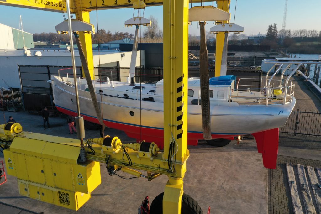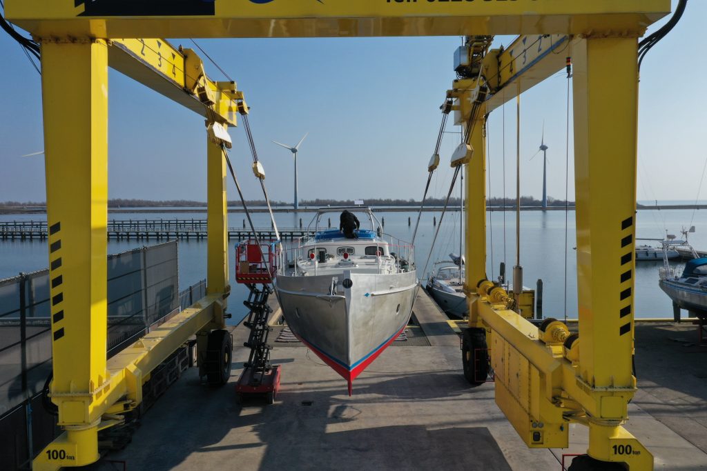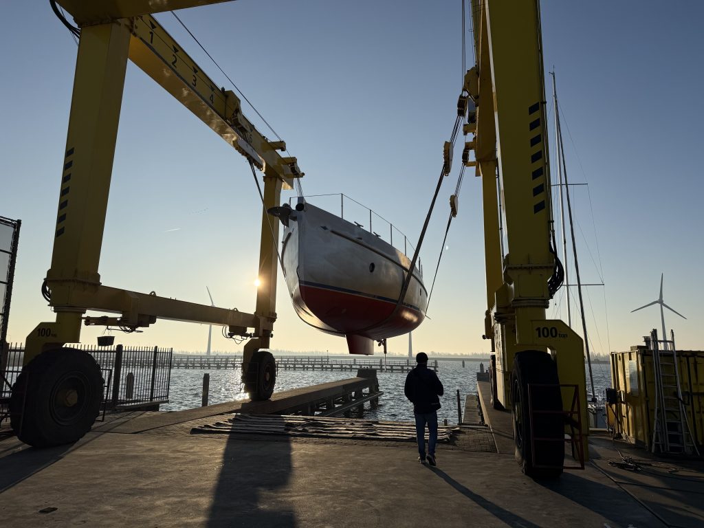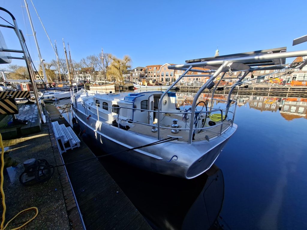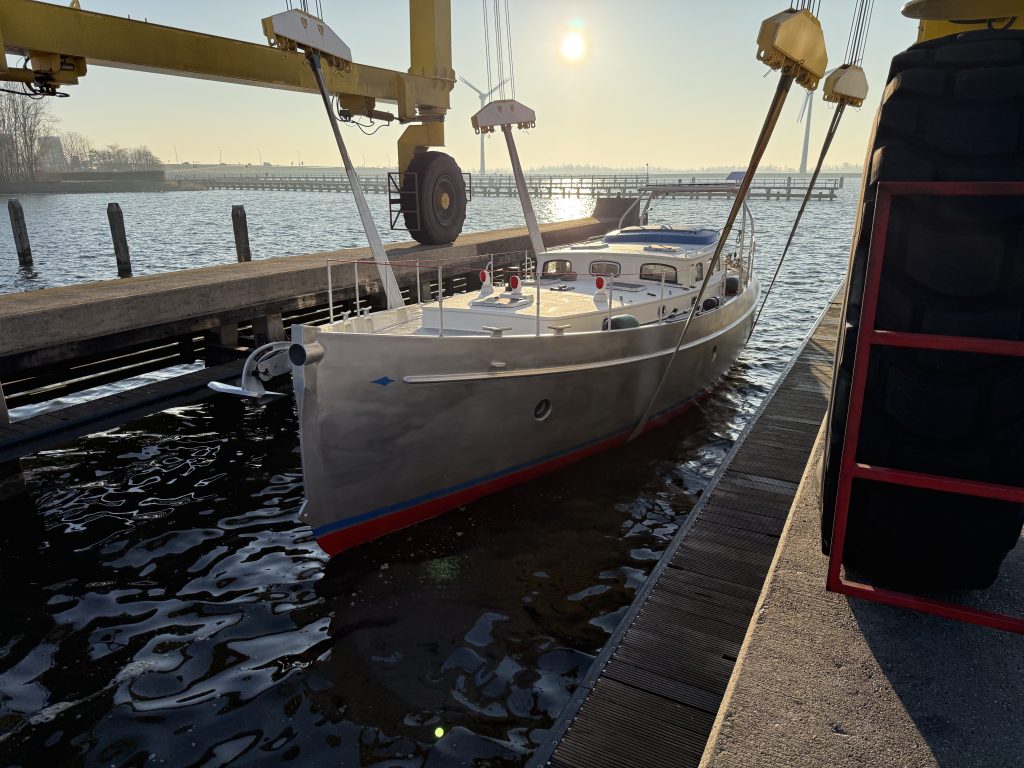 Last week our Puffin 42 hit the water for the first time. After months of building and finishing, she is currently moored alongside our yard in the centre of Enkhuizen. This is where she is now going through the final phase of rig installation and completing the last details on board.